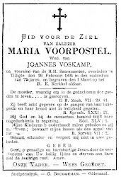 Zijn weduwe Maria Voorpostel hertrouwde op 30 september 1857 met Johannes Voskamp