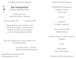 Johannes Radbodus Maria Voorpostel is overleden op 4 januari 2019 op 81-jarige leeftijd te Ootmarsum