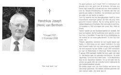 Haar weduwnaar Hendrikus Joseph van Benthem overleed op 16 oktober 2008 op 87-jarige leeftijd te Oldenzaal