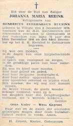 Johanna Maria Reerink overleed op 3 december 1946 op 75-jarige leeftijd te Ootmarsum