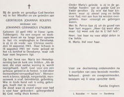| ♀ | Maria Aleida (Marie) Engbers, geboren op 5 november 1926, overleden op 7 september 2015 (88 jaar) . |