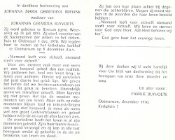 | ♂ | Johannes Bernardus (Jan) Buijvoets, geboren op 28 juni 1929, overleden op 22 oktober 2007 (78 jaar). |