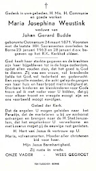 | ♀ | Maria Johanna Hendrika Budde, geboren op 29 augustus 1910, overleden op 12 januari 1986 (75 jaar). |