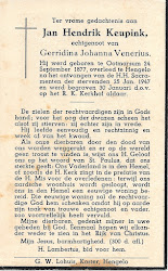 Jan Hendrik Keupink is overleden op 25 januari 1947 op 69-jarige leeftijd te Hengelo