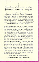 Zijn weduwe Johanna Hendrika Oude Weernink overleed op 16 februari 1953 op 66-jarige leeftijd te Ootmarsum