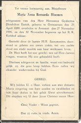 Maria Anna Bernarda Bloemen is overleden op 27 november 1935 op 46-jarige leeftijd te Avereest