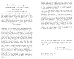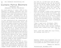Haar weduwnaar Cornelis Petrus Boomars overleed op 7 december 1979 op 81-jarige leeftijd
