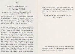Suzanna Pierik overleed op 16 september 1976 op 87-jarige leeftijd te Rossum
