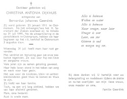 Christina Antonia Dijkhuis overleed op 31 juli 1991 op 80-jarige leeftijd te Ootmarsum