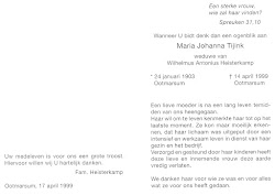 Maria Johanna Tijink is overleden op 14 april 1999 op 96-jarige leeftijd te Ootmarsum
