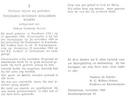 Theodorus Hendrikus Wallarikus Wilbers overleed op 26 november 1984 op 77-jarige leeftijd te Enschede