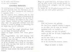 Johanna Reinders is overleden op 7 augustus 1978 op 73-jarige leeftijd (ongehuwd)