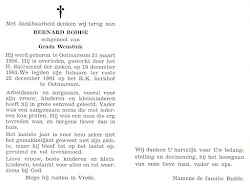 | ♂ | Bernardus Hermanus Gerhardus (Benny) Bodde, geboren op 28 februari 1937, overleden op 10 maart 1988 (51 jaar) . |