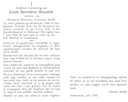 Grada Berendina Weustink is overleden op 4 juni 1988 op 82-jarige leeftijd te Oldenzaal