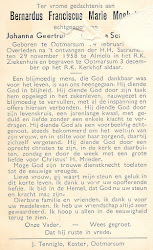 Bernardus Franciskus Marie Moekotte is overleden op 29 november 1958 op 51-jarige leeftijd te Almelo