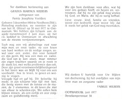 Gradus Marinus Wilbers overleed op 30 mei 1977 op 72-jarige leeftijd te Ootmarsum