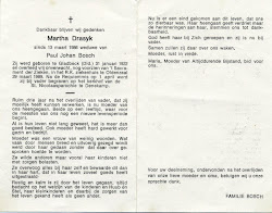 Zijn weduwe Martha Drasyk overleed op 29 maart 1989 op 67-jarige leeftijd te Oldenzaal