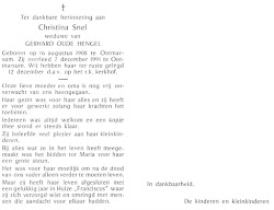 Christina Snel is overleden op 7 december 1991 op 83-jarige leeftijd te Ootmarsum