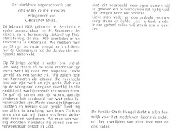Gerhardus Johannes Oude Hengel overleed op 24 mei 1980 op 72-jarige leeftijd te Oldenzaal