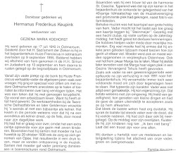 Hermanus Frederikus Keupink is overleden op 9 september 1995 op 85-jarige leeftijd te Ootmarsum
