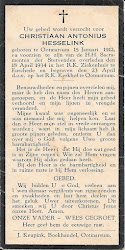 Christiaan Antonius Hesselink is overleden op 18 april 1934 op 22-jarige leeftijd te Enschede (ongehuwd)