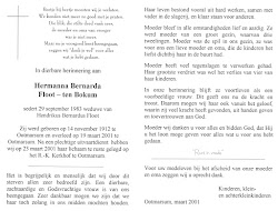 Hermanna Bernarda ten Bokum is overleden op 19 maart 2001 op 88-jarige leeftijd te Ootmarsum