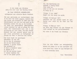 Johanna Maria Veldhuis is overleden op 12 maart 1984 op 79-jarige leeftijd te Tilligte
