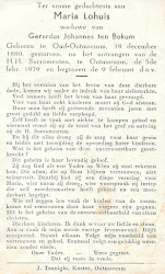 Gerhardus Johannes ten Bokum overleed op 22 augustus 1940 op 67-jarige leeftijd te Ootmarsum.
