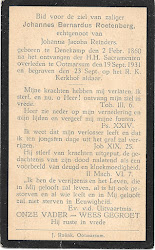 | ♂ | Johannes Bernardus Roetenberg, geboren op 8 juni 1896, overleden op 14 maart 1962 (65 jaar) . |