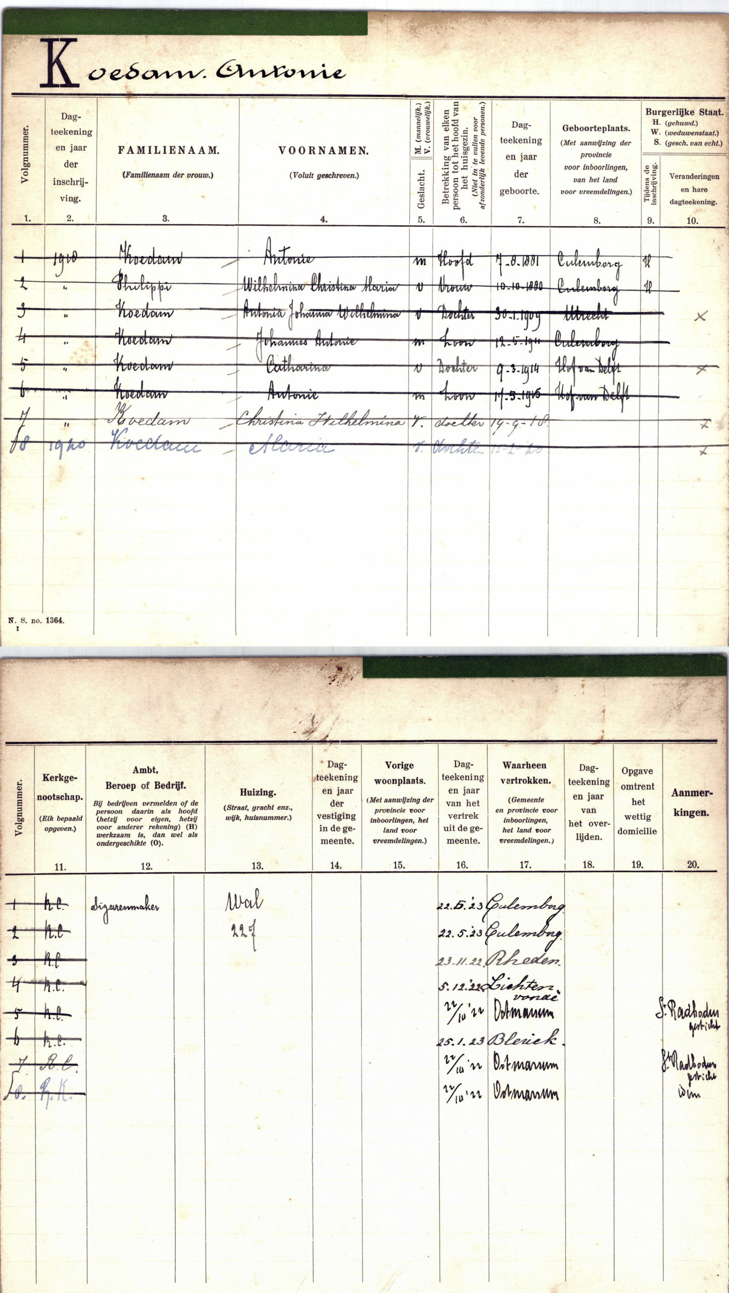 Christina Wilhelmina (Marietje) Koedam is geboren op 19 september 1918 te Buren als dochter van Antonie Koedam (37 jaar) en Wilhelmina Christina Anna Philippi (37 jaar).