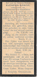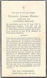 Haar weduwnaar Bernardus Johannes Reinders overleed op 17 december 1953 op 94-jarige leeftijd te Ootmarsum