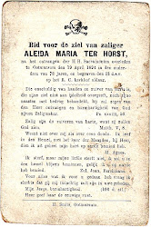Aleida Maria ter Horst is overleden op 19 april 1894 op 78-jarige leeftijd te Ootmarsum (ongehuwd)