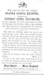 Bernardus Johannes Veltschoelten is overleden op 20 september 1880 op 73-jarige leeftijd te Ootmarsum.