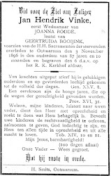 Joannes Henricus Vinke is overleden op 3 november 1896 op 87-jarige leeftijd te Ootmarsum