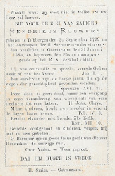 Henricus Rouwers overleed op 21 januari 1884 op 84-jarige leeftijd te Ootmarsum