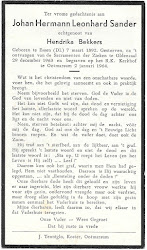 Johann Hermann Leonard Sander is overleden op 29 december 1963 op 71-jarige leeftijd te Oldenzaal