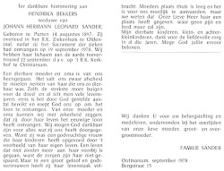 Zijn weduwe Hendrika Bekkers overleed op 19 september 1978 op 81-jarige leeftijd te Oldenzaal