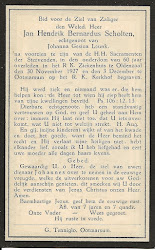 Jan Hendrik Bernardus Scholten overleed op 30 november 1927 op 60-jarige leeftijd te Oldenzaal