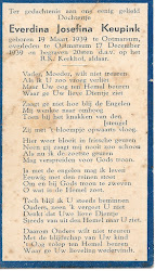 Everdina Josephina Keupink is geboren op 19 maart 1939 te Ootmarsum als dochter van Johannes Bernardus Keupink (33 jaar)