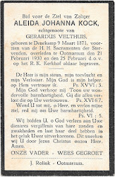 Aleida Johanna Kock overleed op 21 februari 1930 op 58-jarige leeftijd te Ootmarsum