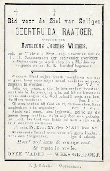 Joannes Bernardus Wilmes is overleden op 15 november 1885 op 63-jarige leeftijd te Denekamp.