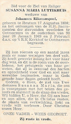 Maria Susanna Luttikhuis is overleden op 28 januari 1949 op 90-jarige leeftijd te Ootmarsum