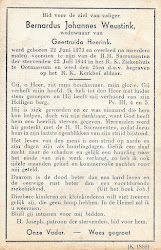 Haar weduwnaar Bernardus Johannes Weustink overleed op 22 juli 1944 op 71-jarige leeftijd te Ootmarsum