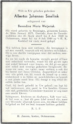 Albertus Johannes Smellink overleed op 4 juli 1949 op 74-jarige leeftijd te Ootmarsum