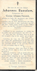 Johannes Baasdam is overleden op 14 april 1939 op 87-jarige leeftijd te Uelsen (Dld)