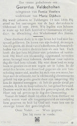 Gerardus Veldscholten overleed op 22 september 1966 op 79-jarige leeftijd te Oldenzaal