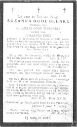 Zijn weduwe Susanna Oude Blenke overleed op 17 juni 1921 op 72-jarige leeftijd te Hezingen