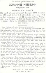 Johannes Hesselink overleed op 1 januari 1964 op 85-jarige leeftijd te Oldenzaal