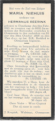 Zijn weduwe Maria Niehuis overleed op 20 oktober 1936 op 83-jarige leeftijd te Ootmarsum