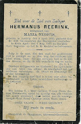 | ♂ | Hendrikus (Hermannus) Rerink, geboren op 7 december 1883, overleden op 16 juni 1912 (28 jaar) . |